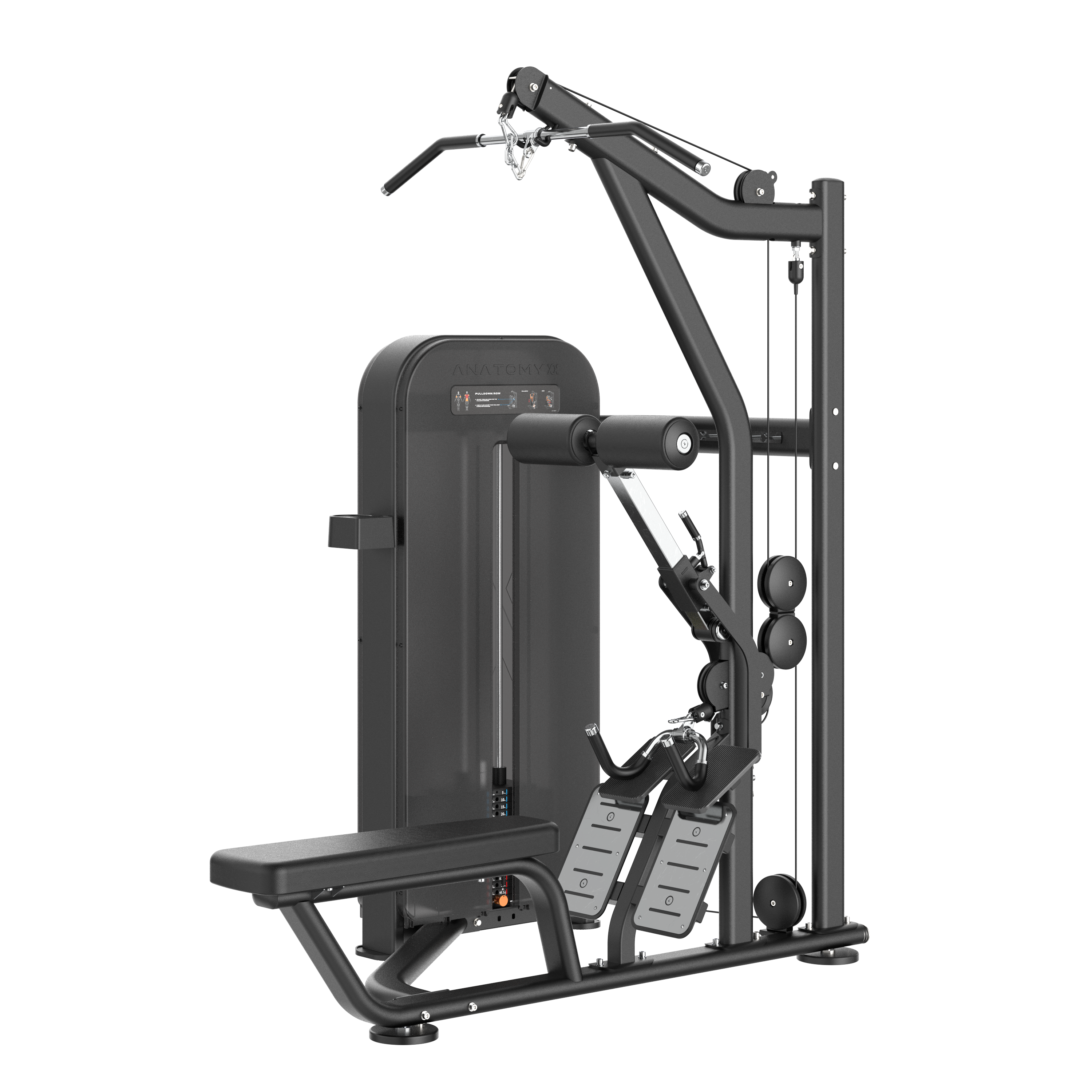 The ANATOMY FITNESS FLEXORA LAT PULLDOWN SEATED ROW is a versatile dual-function machine designed to target both the back and upper body muscles. This equipment offers a comprehensive upper body workout by allowing users to perform both lat pulldown and seated row exercises in a single unit. Featuring adjustable handles and a padded seat, the machine ensures user comfort and proper form during exercises. The dual-function design enables users to seamlessly switch between different exercises without the need for complex adjustments, making it efficient and user-friendly.