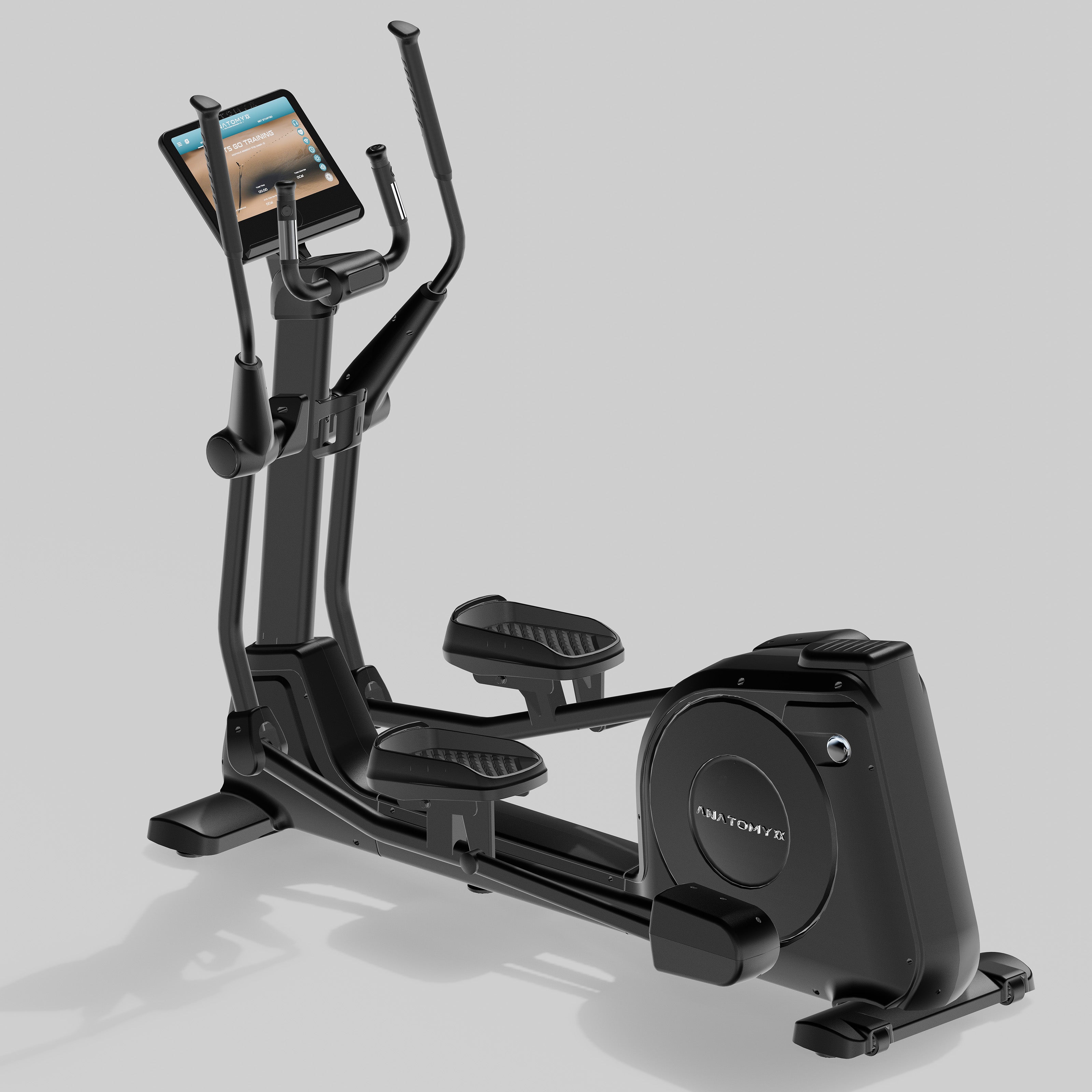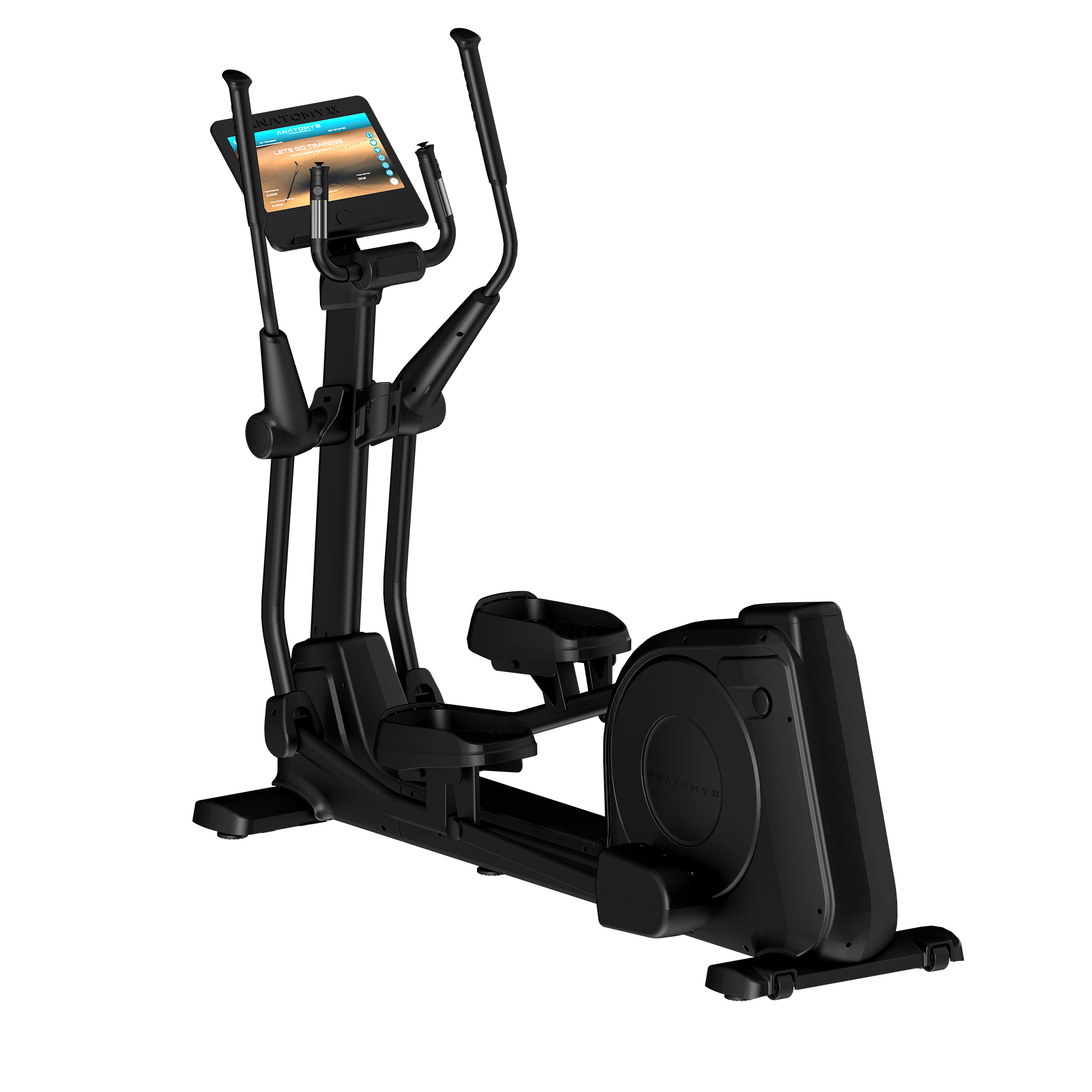 The Anatomy Commercial Elliptical - Touch screen monitor seamlessly merges innovation and functionality through its state-of-the-art touchscreen monitor. This elliptical is equipped with an integrated touchscreen that supports app integration, enabling users to enhance their workouts with virtual courses, personalized training programs, and entertainment options.